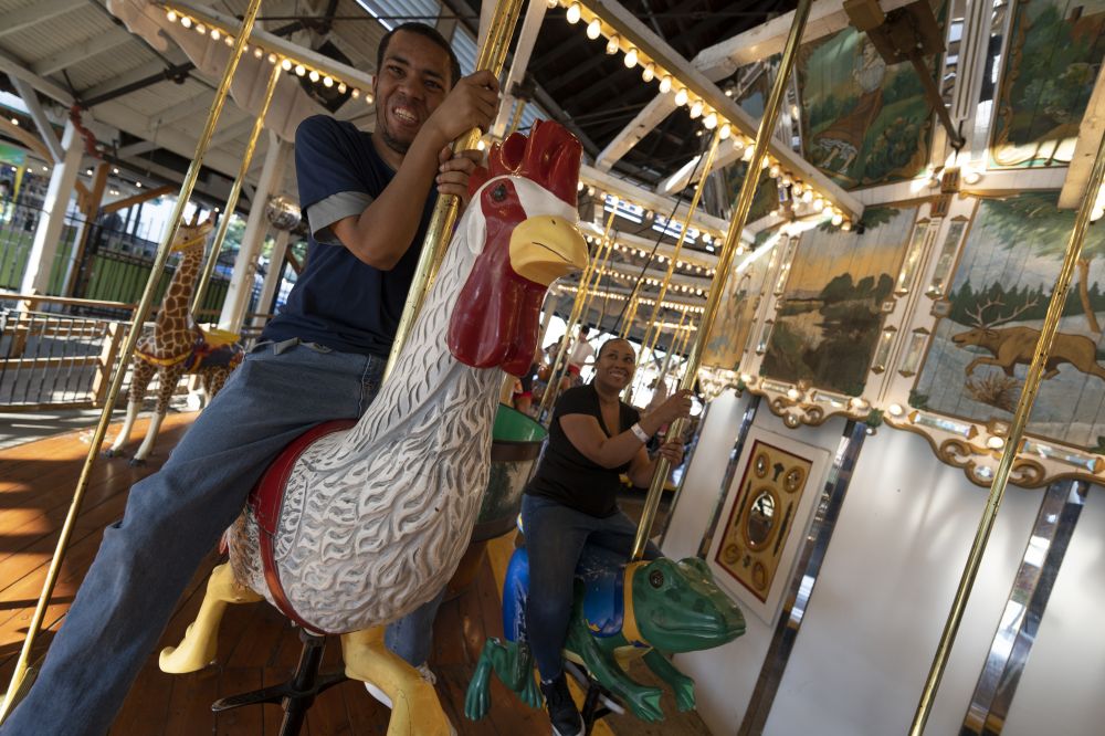 Our hand-carved menagerie carousel is on the National Historic Register and has been on our midway for over 100 years! Free to ride during general hours; no wristband is required.