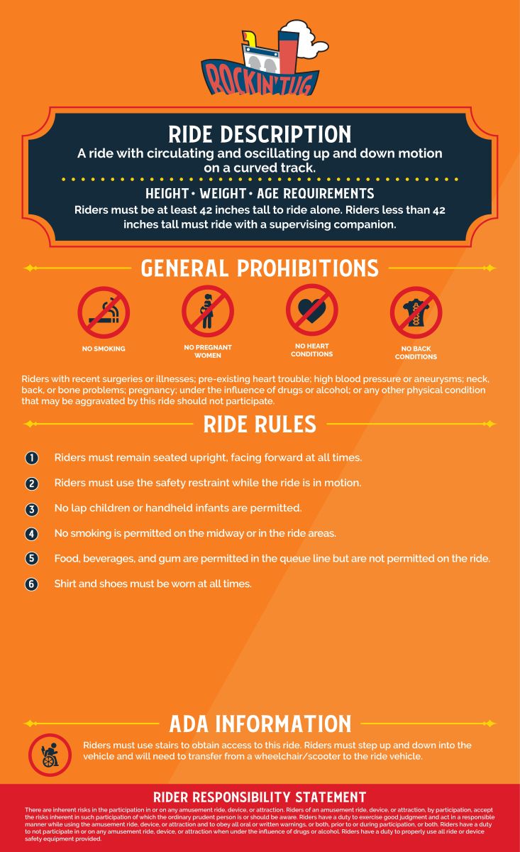 Anchored at the north end of the midway, the Good Ship Bollinger rocks riders every which way for a high-seas family adventure! Benches can accommodate 1-4 riders per row.
