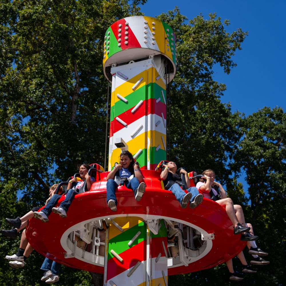 This attraction is currently closed for maintenance. Once is never enough! Our family-friendly freefall drop tower plummets from 45' not just once but over and over again