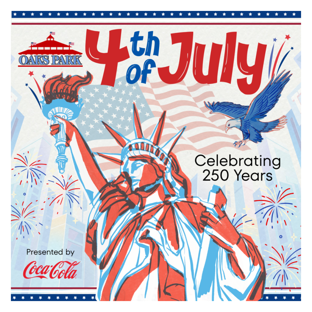 Celebrate the 250th anniversary of the U.S.A. For nearly half of the country's history, families from all over the region have flocked to the historic Oaks Amusement Park for a front-row seat at a dazzling fireworks display, and this year promises to be a delightful day filled with the joys of our nation's milestone birthday!